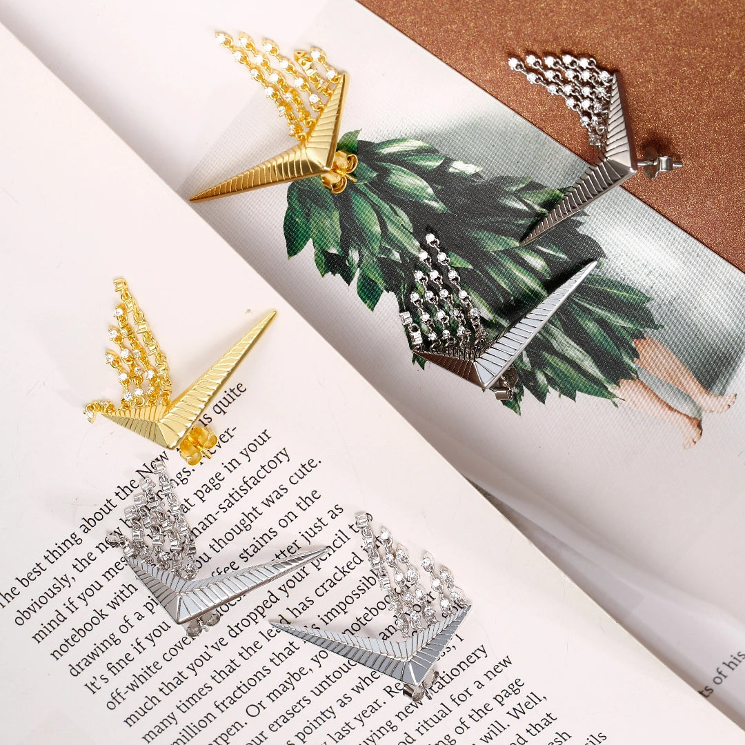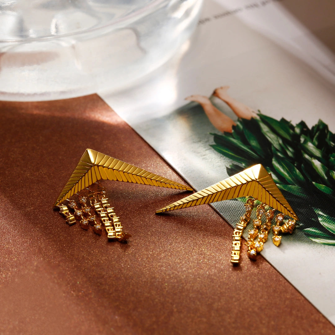 Triangle Cubic Zirconia Diamond Earrings Falling star Collection Designed by Ida Eckhel